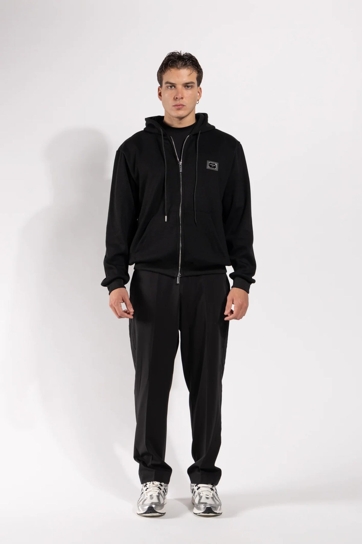 Esta sudadera con cremallera de Gavroche presenta un diseño moderno y refinado, con una placa con el logo en el pecho que le da un toque distintivo y contemporáneo. Confeccionada en una suave mezcla de lana de alta calidad, ofrece comodidad, calidez y un ajuste excelente. La prenda cuenta con una capucha ajustable con cordón, cierre de cremallera metálica y bolsillos tipo canguro delanteros. Una prenda versátil y sofisticada, perfecta para looks casuales o urbanos, con el estilo único de Gavroche.